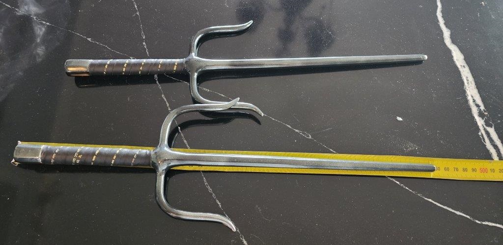 45 cm Ninja Sai with black leather and wire wrapped handle.