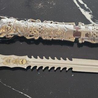 The overall sword length is 87 cm with a sharp stainless blade measures 66 cm.