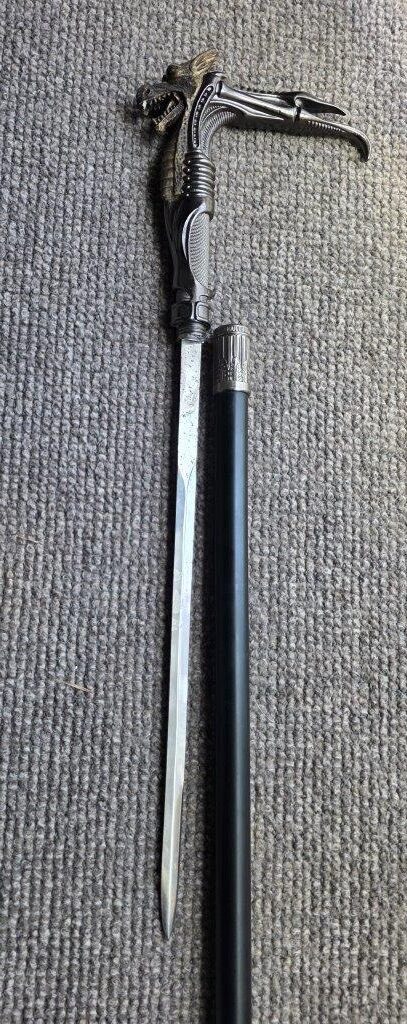 We have here a beautiful hand crafted gentleman’s walking stick cane which has a sword/dagger in the supporting shaft